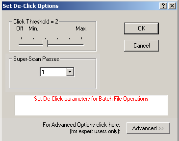For badly damaged recordings set a super-scan value to enable multiple passes of the click corrector.