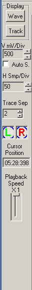 'Wave' and 'Track' buttons for selecting the view mode for the main window.