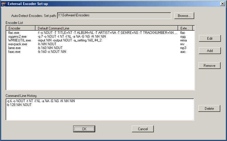 Use this command to configure the external command line encoders used by Wave Corrector.