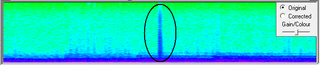 Wave Corrector provides two methods to manually find clicks using spectral analysis of the wave. Musical forms tend to consist of discrete frequency peaks usually with a harmonic relationship; ie the peaks tend to be evenly spaced across the frequency range. Noise, on the other hand, has no coherent structure and all frequencies tend to be present in approximately equal amounts. These characteristics can help you recognise a noise event when it is not obvious from the waveform display in the main window.